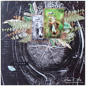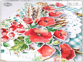LO on black 13art paper, with cut out elements from UHK Gallery and Fabrika Decoru papers, Wycinanka's chipboards and some cut die elements. There is no paint. Paper in the background was so beautiful that I did't want to cover it.