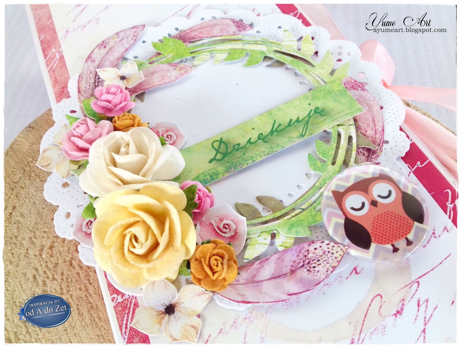 Oto czekoladownik dla bloga sklepu "Od A do Zet" z nowiutkich papierów "Oho BOHO" UHK Gallery. Piękne i żywe kolory połączyłam z kwiatkami, kilkoma wycinankami z wykrojników i piórkami wyciętymi z arkuszy. Pojawił się też badzik z uroczą sówką.