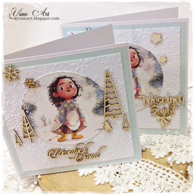 It will be simple but very cute because I used awesome graphics "Winter Story" from Janet. I used one of the pictures to prepare simple Christmas cards. I used some chipboards from "Fabryka Weny"
